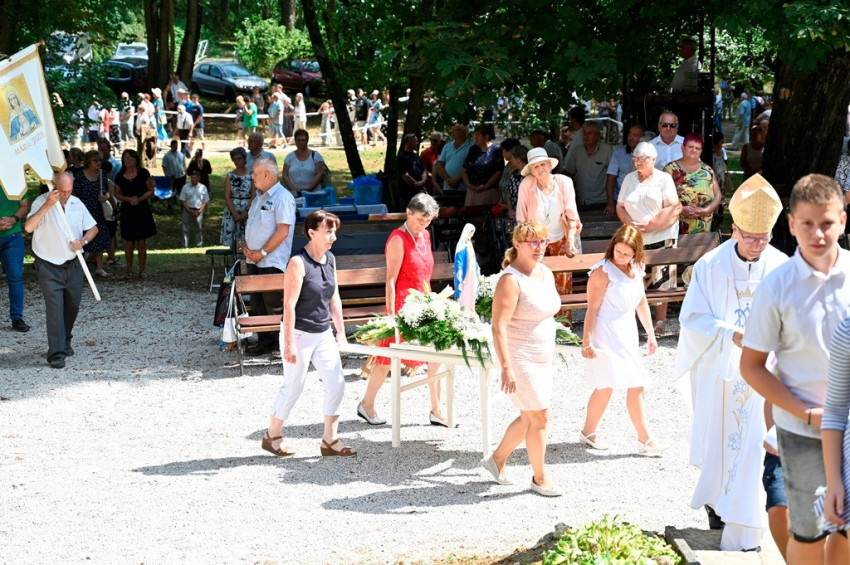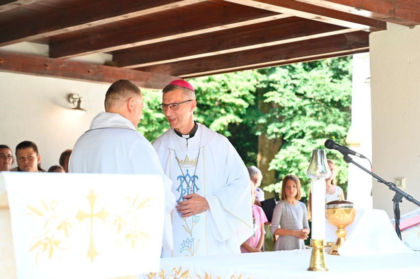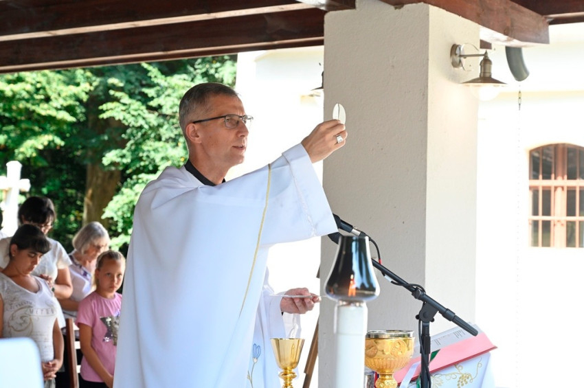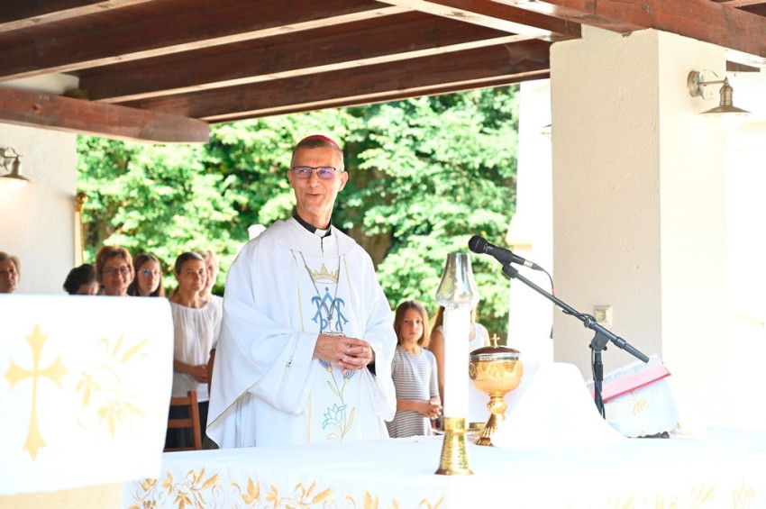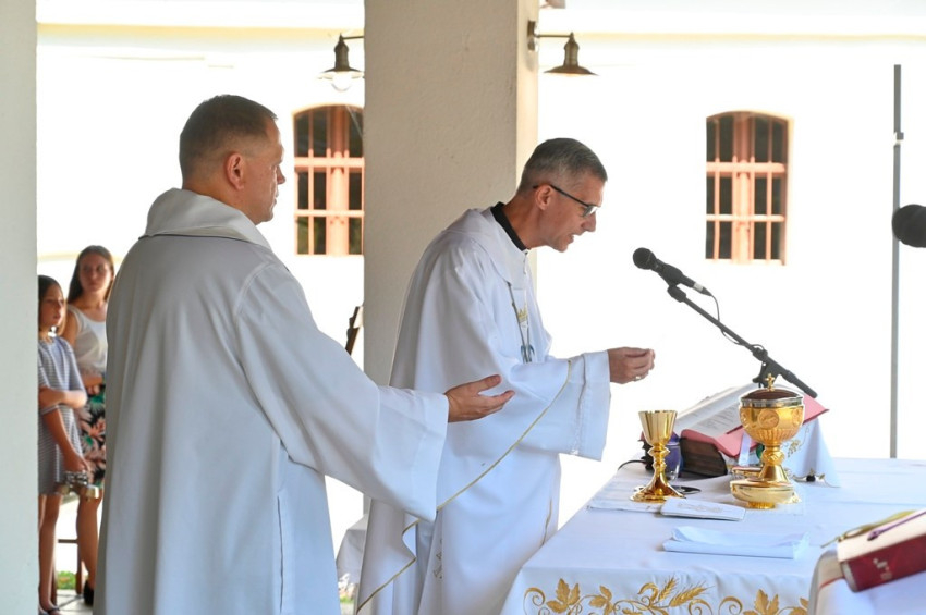 Nagyboldogasszony búcsús ünnepére számos hívő gyűlt össze a pusztacsatári kegykápolnánál felállított szabadtéri oltár körül. A szentmise kezdetén Mikolás Attila plébános köszöntötte Martos Levente Balázs püspököt és a híveket, valamint örömét fejezte ki, hogy a nagy hőségben is ennyien összegyűltek köszönteni a mennybe felvett Szűzanyát.