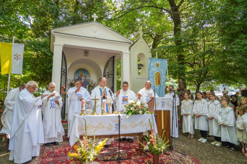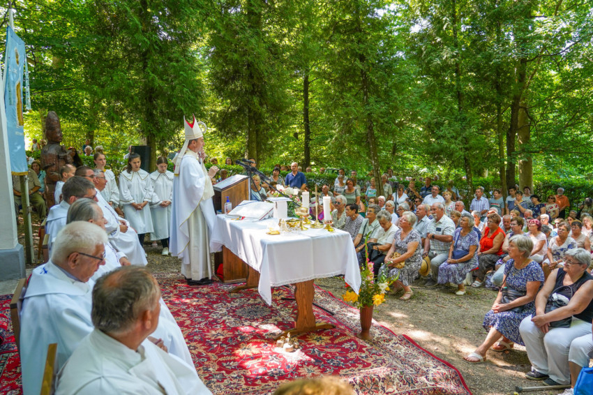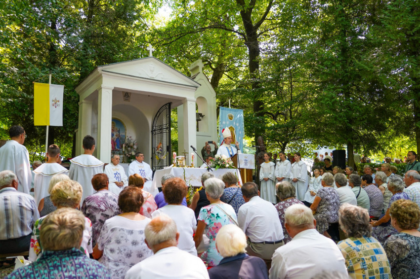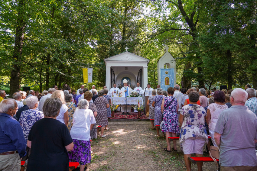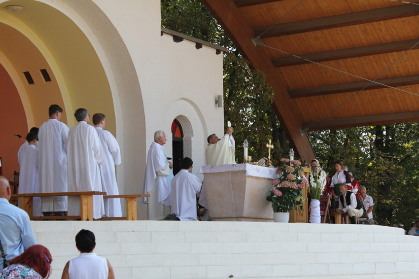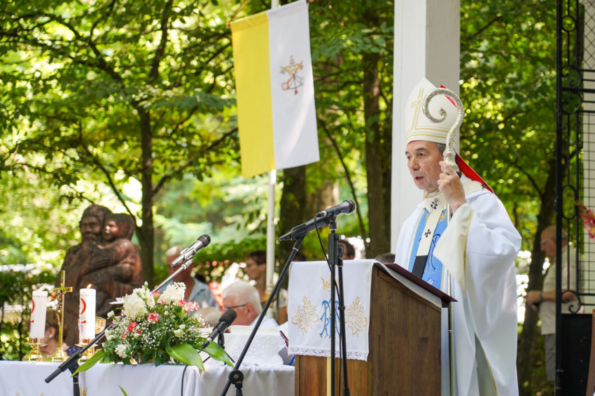 Felföldi László pécsi megyéspüspök a máriagyűdi szabadtéri oltárnál mutatott be ünnepi szentmisét augusztus 15-én.