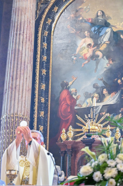 Homíliájában elhangzott: Máriára úgy tekintünk, mint égi édesanyánkra, hiszen a haldokló Jézus a kereszten őrá bízta János apostolt és benne az Egyházat. Ezen a napon mindannyian az égre nézünk.