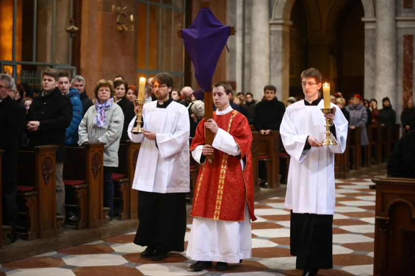 Krisztus a kereszt magaslatáról is tanít. Isten parancsát, a főparancsot, a legfőbb törvényt tanítja nekünk, hogy mi is teljes szívünkből, teljes lelkünkből és minden erőnkből szeressünk. Mert ez nem veszteség, ez nem lemondás, hanem harmónia Istennel és a világmindenséggel. Ebben van életünk és boldogságunk – hangsúlyozta a főpásztor, majd az ismert keresztúti ének szavaival zárta nagypénteki szentbeszédét: „Mi egyetlen boldogságunk, szent keresztfa sírva áldunk!”