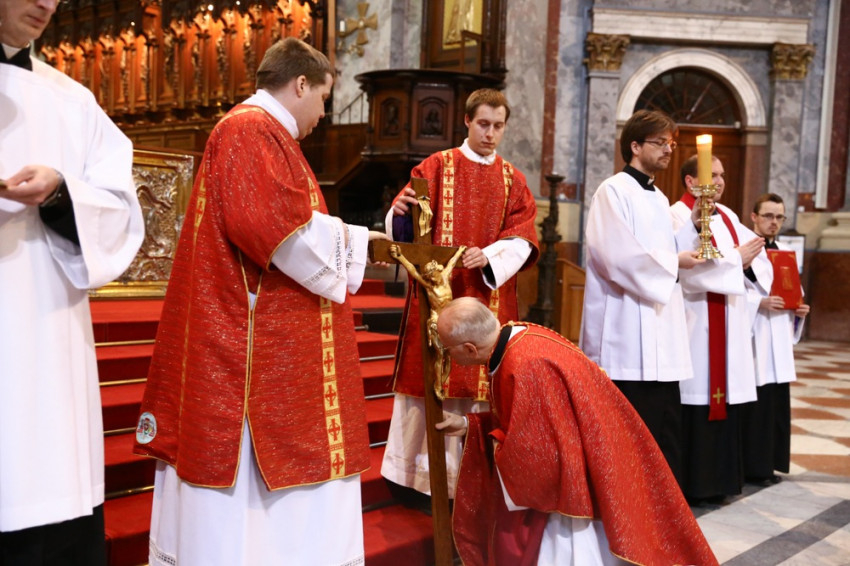 A szertartás kezdetén Erdő Péter bíboros leborult az oltár előtt, majd következett az igeliturgia, melynek részeként a szenvedéstörténetet, a passiót közösen énekelve adta elő a bazilika énekkara és az esztergomi Érseki Papnevelő Intézet növendékei, drámai módon idézve fel Krisztus szenvedését, az Isten irántunk való szeretetének titkát.