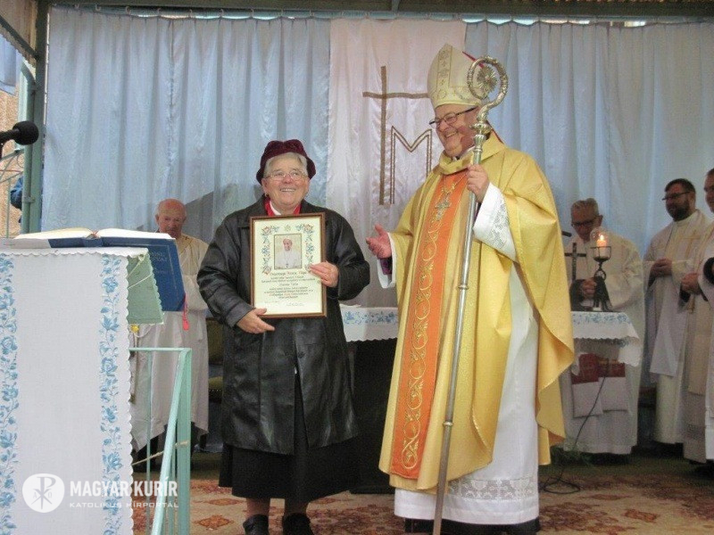 Végül Spányi Antal püspök átadta Barina Júlia nővérnek a sokéves hűséges kántori és kórusvezetői szolgálatáért kapott pápai áldást. A szentmise után körmenetben, énekekkel köszöntötték a Szűzanyát, végül a megyéspüspök külön megáldott minden nagyszülőt.