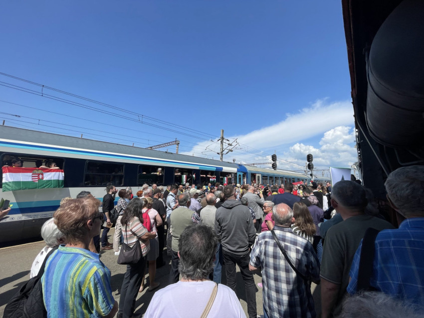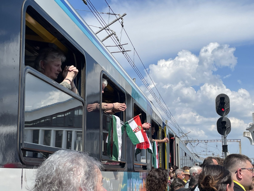 A zarándokokkal együtt utazó Felföldi László pécsi megyéspüspök köszönetet mondott a fogadtatatásért, majd püspöki áldással indult tovább a vonat Csíksomlyó felé.