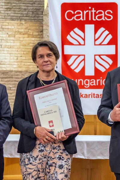 – Mindig próbáltam segíteni az elesett, utcán lakó embereken, ha másképpen nem, egy kis pénzadománnyal vagy élelmiszerrel. Férjem kezdeményezésére körülbelül 15 évvel ezelőtt kezdtük el azt, hogy karácsony előtt két élelmiszercsomagot készítettünk össze, és a településünkön lakó két rászoruló családnak adtuk oda. Azóta gyermekeinkkel és két barátunkkal együtt öt csomagot készítünk. Férjem vesedialízisre jár, és ezt az öt csomagot a nővérek közreműködésével öt rászoruló beteg társa kapja. Nagyobbik lányunk a munkahelye révén is tud segíteni rászorulókon, és lányának – kisunokánknak – is ezt tanítja, például az üzletek bejáratánál lévő rászorulóknak mindig vesz valami élelmiszert, az elmúlt évben pedig már az Erzsébet-kenyér kiosztásánál is segédkezett. Kisebbik lányunk pedig egy városi szociális intézmény szakmai vezetője. Az ő kezdeményezésükre boltban megmaradt élelmiszert gyűjtenek és osztanak a város rászoruló családjainak. Így bátran mondhatom, hogy családunkban a jótékonykodás mindennapi dolog.