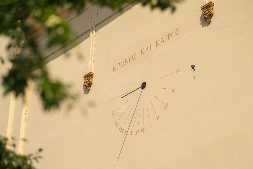 Varga László püspök a napórán olvasható görög jelmondat – Kronosz kai kairosz – kapcsán kifejtette: többféle időfogalom létezik: beszélhetünk kozmikus időről; kronoszról, a történelmi időről és a kairoszról, az üdvösség idejéről. A kozmikus idő ciklikus, ismétlődik – ezt méri a napóra is. A kronosz, a történelmi idő események egymásutániságát jelenti – ennek vagyunk részesei történelmünk során saját élettörténetünkkel, országunk, Egyházunk történetével, amely dokumentálható, de nem ismétlődő.