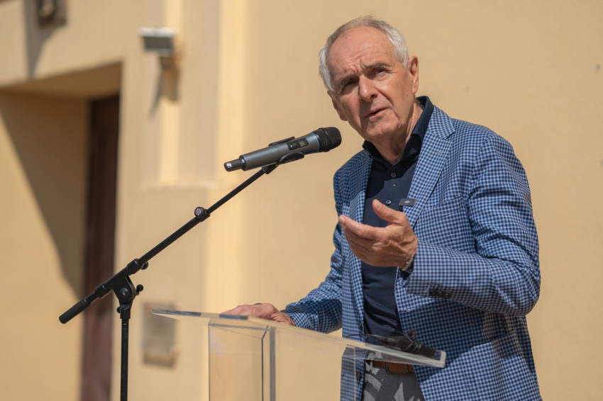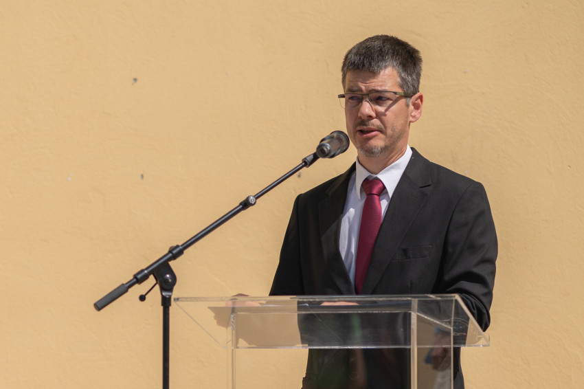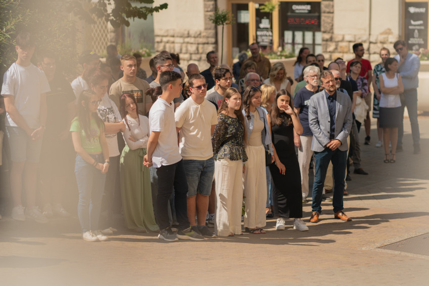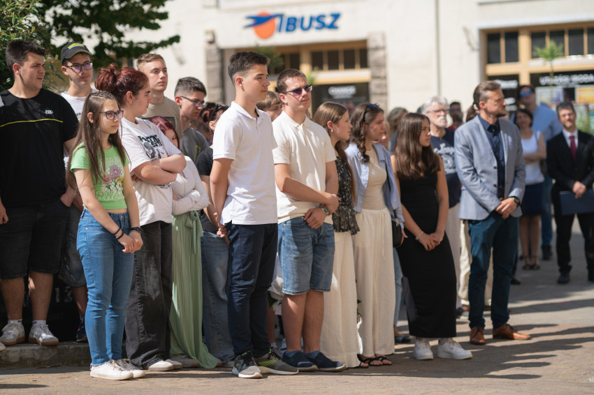 „A napóra elhelyezésével három célt fogalmaztunk meg – kezdte beszédét Varga Bálint, a Nagyboldogasszony Iskolaközpont igazgatója. – Elsőként a jelmondattal spirituális üzenetet szerettünk volna közvetíteni, amelyről Varga László püspök az imént beszélt.