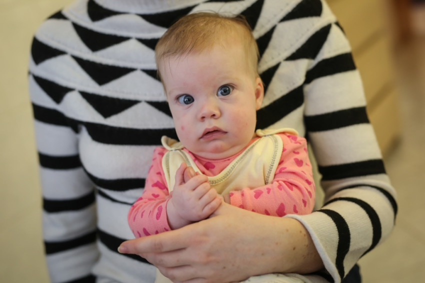 Sch. F. : Eszti az előbb még kicsit nyugtalanabb volt, ez érthető, hiszen tegnap kapták a negyedik havi kötelező oltásukat.