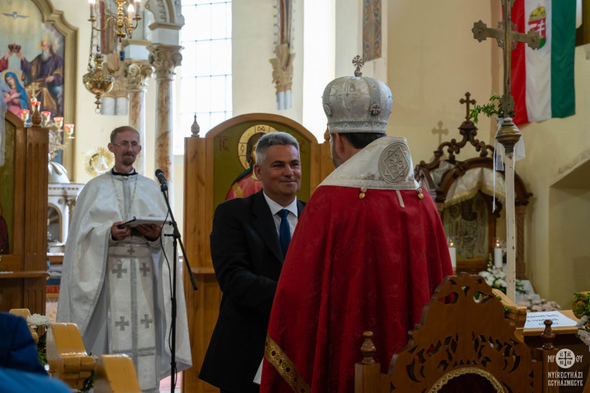 A főpásztor pedig – megköszönve fáradozását – ezüst mellkereszt viselésére jogosította fel Gajdos László parókust.
