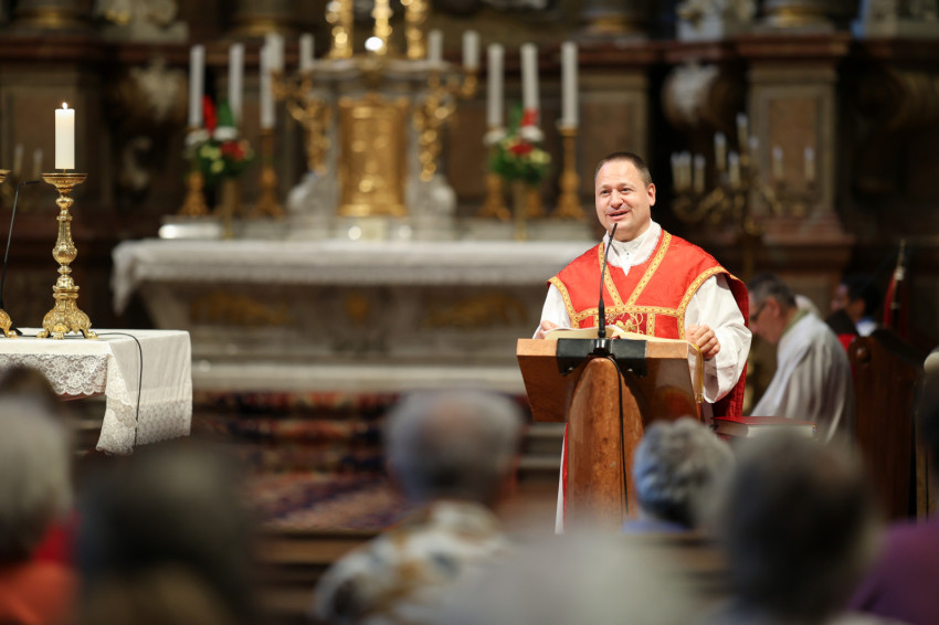 Kovács Zoltán felidézte: tizenkét éves gyermekként itt ült, ebben a templomban a vasárnap reggeli diákmiséken, és vágyakozva nézte az oltárnál szolgáló ministránsokat, milyen jó lenne ebben részt venni. A most gyémántmiséjére készülő Katona István atya készítette fel a hitre. Kovács Zoltán 1991. május 12-én volt elsőáldozó. Nagyon szeretett volna ő is ministrálni, de nem tudta, hogyan lépjen oda István atyához a kérésével. Néhány nap múlva, pénteken délután Katona István így szólt hozzá: