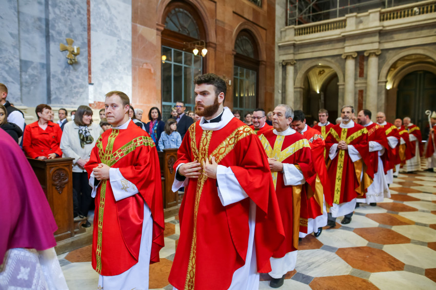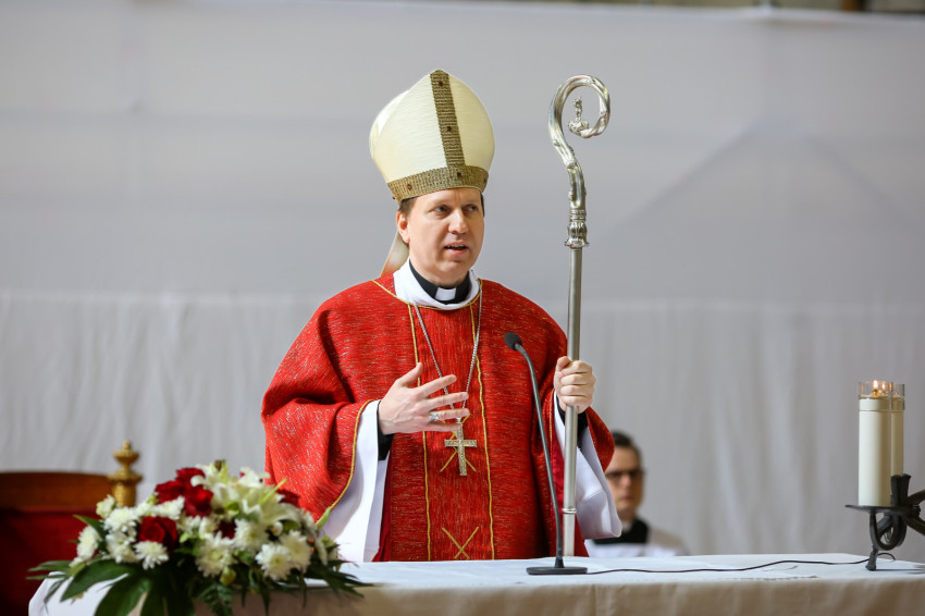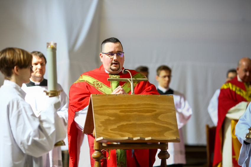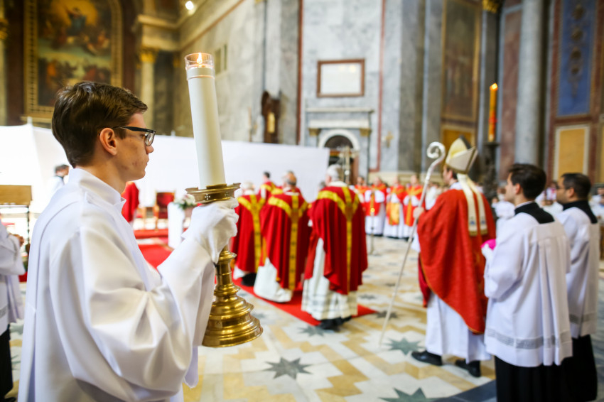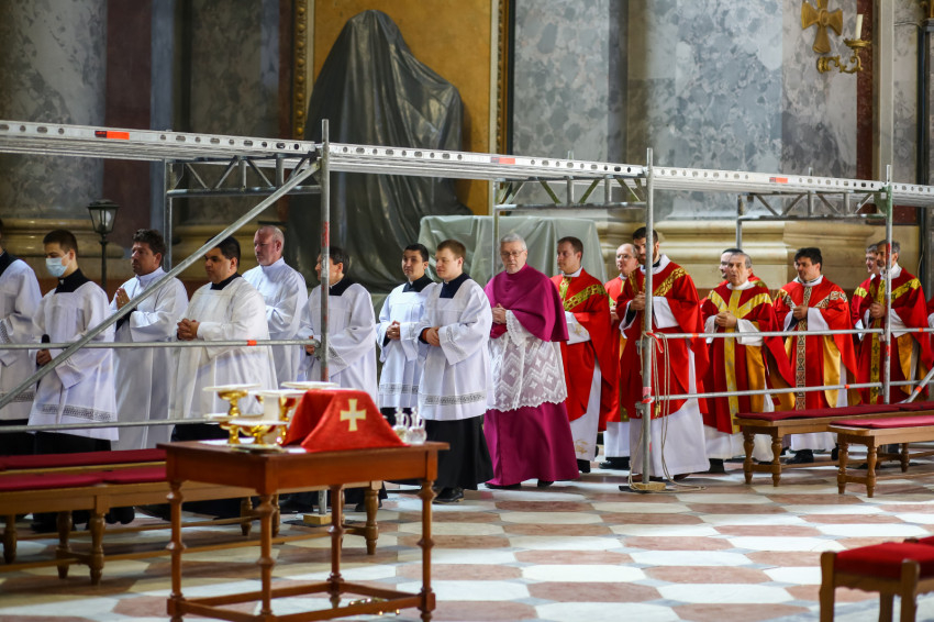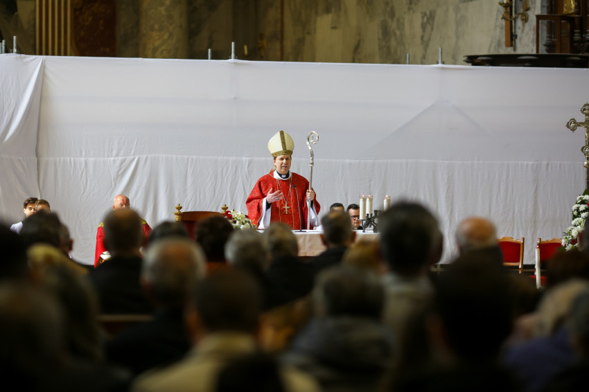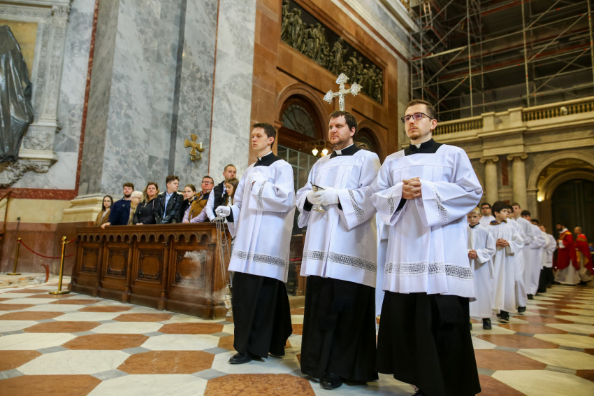 Az evangélium Szent János könyvéből hangzott el: A világ gyűlölete a tanítványok iránt (15,18–22). Homíliájában Mohos Gábor, ismertetve Szent Adalbert életútját, emlékeztetett rá, hogy ő keresztelte meg és bérmálta Szent Istvánt. Bár csak egy-két évet töltött mellette, óriási hatással volt Istvánra, gazdag lelki kincseket hagyott rá, így a magyar történelem alakulásában is jelentős szerepet játszott. Kiemelte: Szent Adalbert jómódú családba született, rendkívüli képességekkel rendelkezett, minden adott volt, hogy fényes karriert fusson be, de már gyermekkorától kezdve komoly betegségben szenvedett. Ha a jövőnkről gondolkozunk, általában nem tervezzük be a betegséget, hisz mindig azt képzeljük el, hogyan épül fel a szép, a jó az életünkben. Ám ha nem várt események történnek, rá kell döbbennünk, hogy vannak dolgok, amelyeken változtatni nem áll hatalmunkban. Nem mindent tudunk kézben tartani, sok olyan fejlemény történhet, ami felborítja, átírja a vágyainkat. Adalbert már gyermekkorában felismerte: lehetnek terveink, de van egy felsőbb hatalom is: a mennyei Atya irányítja az életet, és ő az, aki kézben tartja azokat a körülményeket is, amelyeket mi nem ismerünk. Az Ő elképzelése az, hogy a lelkünk mélyén találjuk meg vele a kapcsolatot, életünk igazi mélységeit. Adalbert már nagyon korán rátalált erre, és kiforrott lelkében a vágy a papi hivatásra. Nem az a cél vezette, hogy a világi életben legyen sikeres, hanem Isten hívását követve a lelkek üdvösségén kívánt munkálkodni, hiszen ugyan mit ér itt a világban akár a legnagyobb siker is, ha az ember utána az örök kárhozatra kerül? Sokkal fontosabb a lelkek üdvössége, hogy a lélek örök boldogságra jusson a földi élet után. Adalbert így Isten szolgálatában a lelkek megmentésének szentelte az életét.