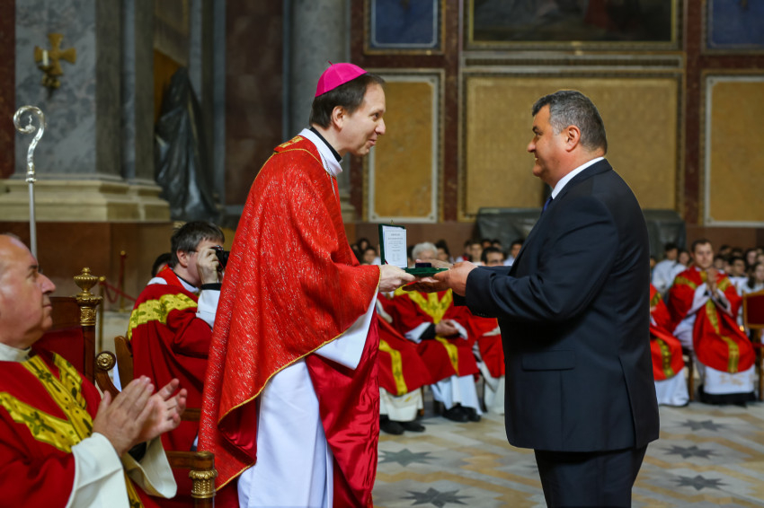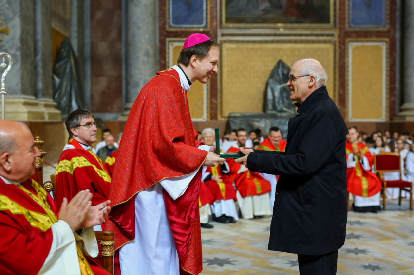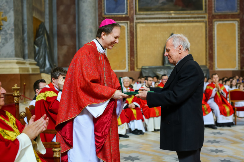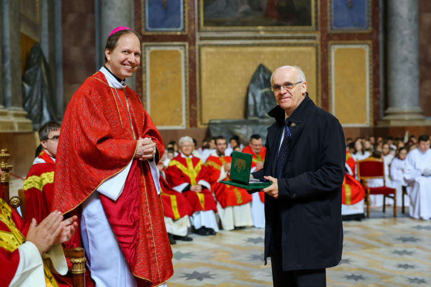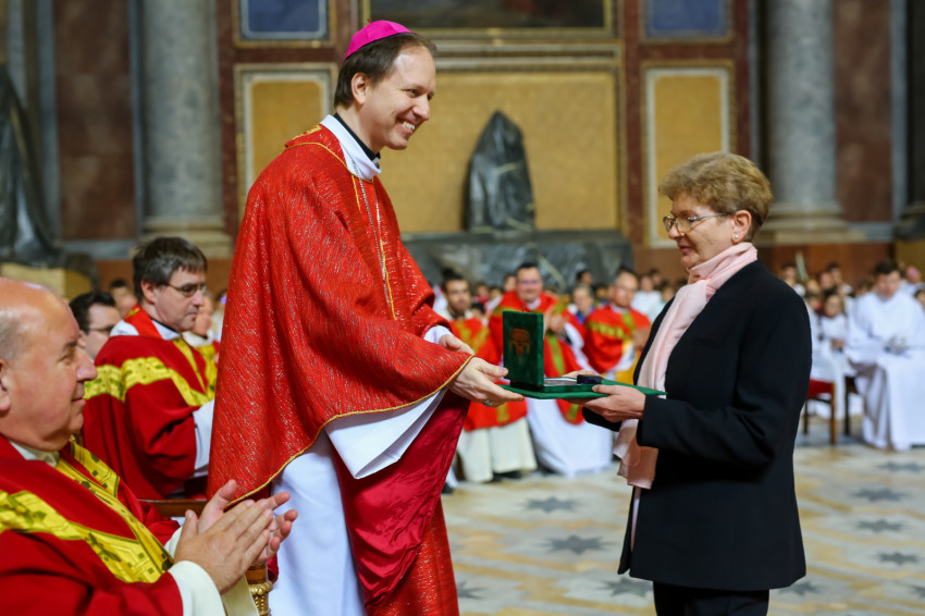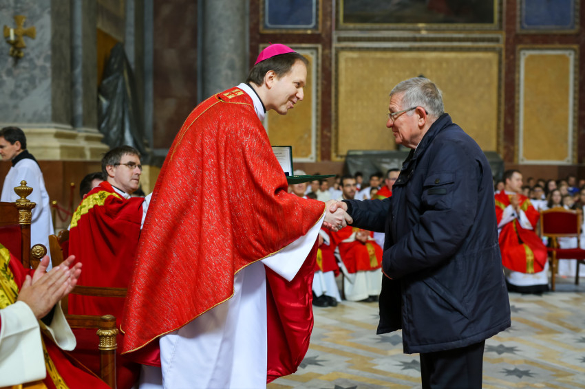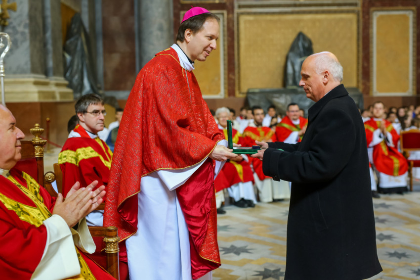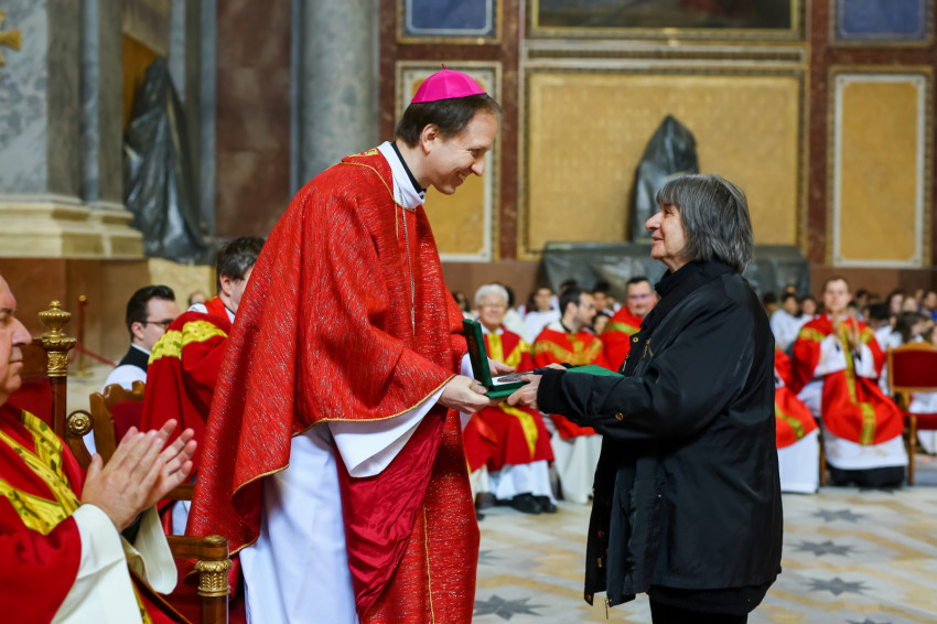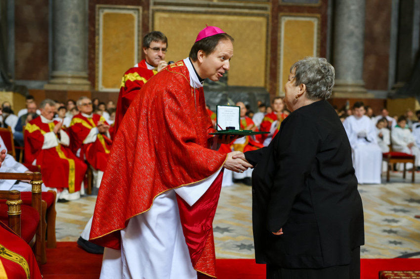 A szentmise végén, még a záró áldás előtt Mohos Gábor összesen tizenegy személynek adta át a Szent Adalbert-díjat.
