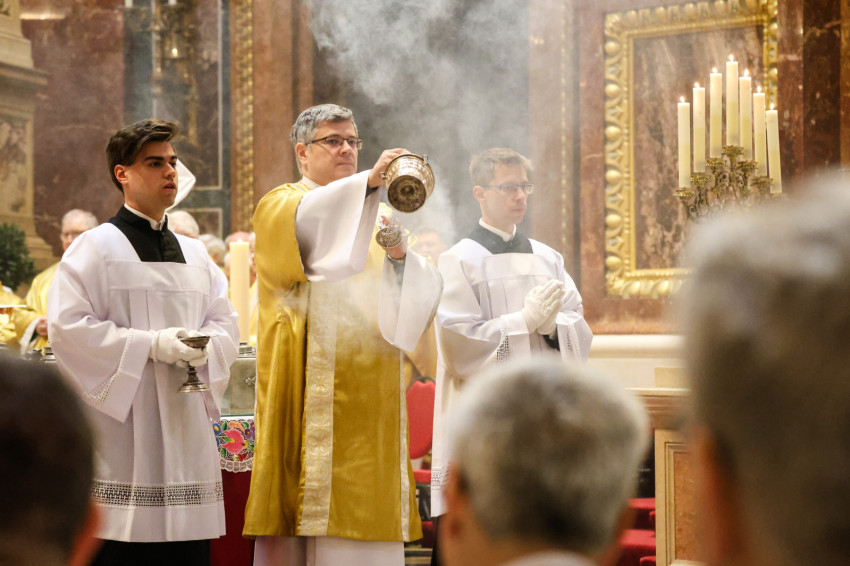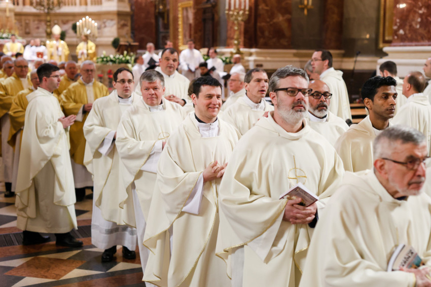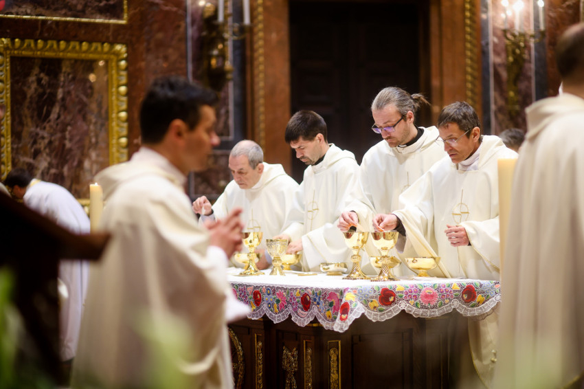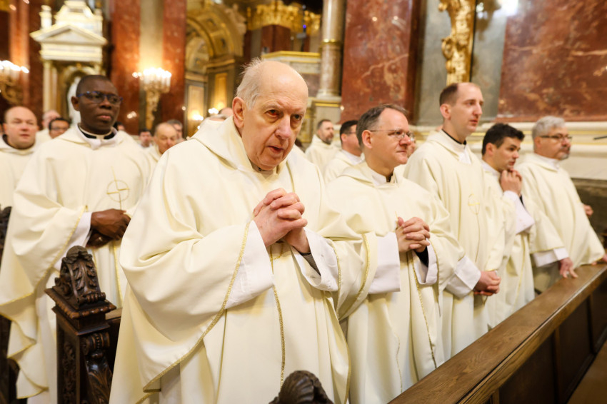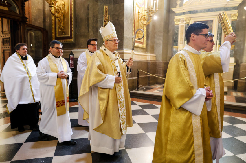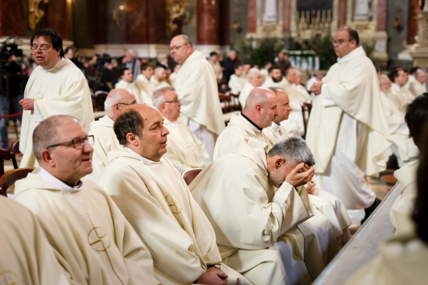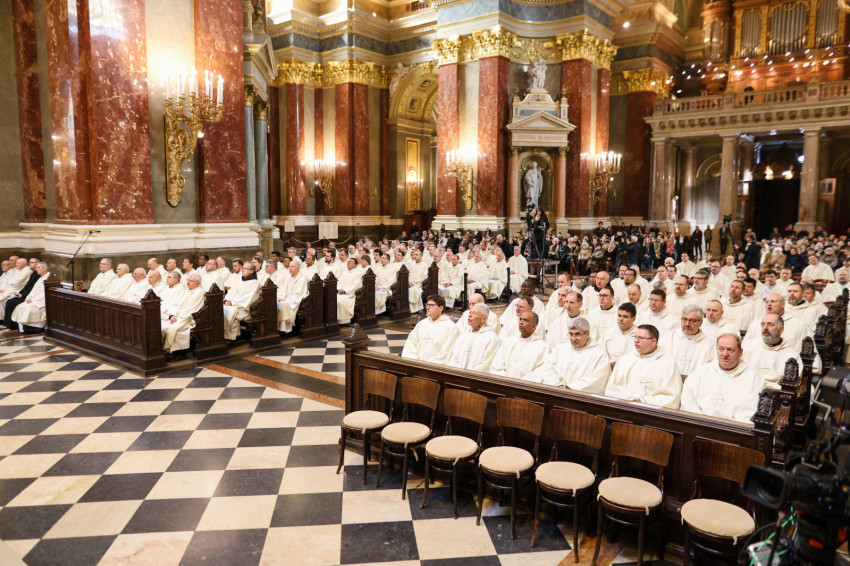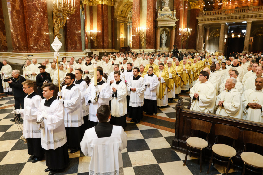 Nagycsütörtök délelőtt az olajszentelési szentmise vezeti be a szent háromnap ünneplését. Erdő Péter bíboros az Esztergom-Budapesti Főegyházmegye papságával és az egyházmegye területén szolgáló szerzetespapokkal együtt mutatta be a szentmisét, melyen koncelebráltak Michael Wallace Banach apostoli nuncius, a főegyházmegye segédpüspökei, Mohos Gábor és Martos Levente Balázs, valamint teljes papsága, illetve együtt ünnepeltek a főegyházmegye diakónusai és hívei is.