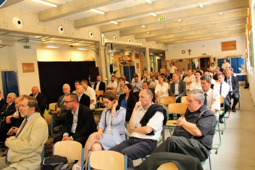 Ezt követően a vendégek a Piarista Kft. asztalos tanműhelyében megrendezett jubileumi ünnepségen vettek részt, amelynek keretében megemlékezéseket, néptáncbemutatót tartottak, emellett élőzenés produkciókat is hallgathattak az egybegyűltek. A köszöntéseket követően Jelenits István SchP, az iskola egyik elindítója, egykori tartományfőnök beszélt arról, hogy milyen gondolatok vezettek az alapításhoz, miért meghatározó a társadalmi szerepe egy iskolának, és honnan ismerhető meg a gödi fiatal. „Nem minden gyerek egyforma. Nemcsak a tehetségében különbözhet a másiktól, hanem abban is, hogy más a fejlődési ritmusa. Amikor megalapítottuk ezt a szakmunkásképzőt, kerestük az olyan gyerekeket, akiknek valami családi ok miatt, vagy születési adottságuk miatt, az iskolának az a része, ahol érettségit lehet szerezni, nehezen elérhető. Nekik szerettünk volna másik utat mutatni. Arra gondoltunk, hogy talán azoknak a gyerekeknek, akik nagyon nehezen haladnak egyébként az iskolában, meg tudjuk mutatni, hogy a kezük ügyes. És nemcsak a kezük ügyes, hanem van egy olyan intelligenciájuk is, amit az anyag megformálása által mutathatnak meg. Az a gyerek, aki az általános iskolában nyolc évig élt meg sikertelenséget, egyszer csak azt tapasztalja, hogy valami sikerül, gyorsabban meg tud oldani egy feladatot, és jobb a bizonyítványa. Akinek nincs tehetsége mondjuk a nyelvek iránt, az is könnyebben halad, amikor azt tapasztalja, hogy szüksége van a tudásra. A szakmunkásképző iskola megalapításával az alkotás örömét kívántuk megmutatni a diákoknak” – mondta el Jelenits István.