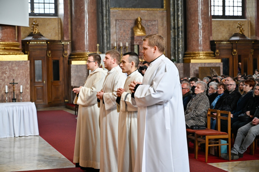 A Szombathelyi Egyházmegyében azonban másról is szólt idén ez az ünnep. Négy fiatal kötelezte el magát Krisztus szolgálatában: Járfás Ádám, Pongrácz Benedek, Rákos József és Rátkai István papnövendékeket diakónussá szentelte Székely János megyéspüspök.