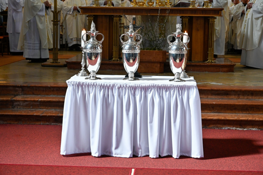 A szentbeszéd után következett a diakónusok szentelése, majd az olajszentelési szertartással folytatódott a szentmise.