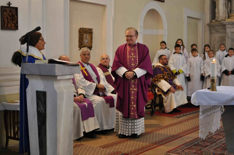 Marton Zsolt megyéspüspök, a szentmise ünnepi szónoka először a kórusiskolás gyermekekkel beszélgetett kedves közvetlenséggel az adventről és az egyházi évről, melyet egy szép utazáshoz hasonlított. „Jézus a mi utunk. Ő azt mondta, hogy én vagyok az út, az igazság és az élet.”