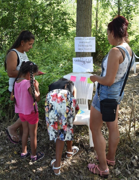 A Boldog Ceferino imaösvényen az ima erejéről, a bocsánatkérésről, áldozatvállalásról és a közösség megtartó erejéről elmélkedhettek egy-egy jelkép, fénykép segítségével. A kisebbek felnőtt segítséggel értették meg a feladatokat, vagy tudták „papírra vetni” imaszándékaikat. Az ösvény végén a KINCS feliratú dobozt kíváncsian nyitották ki egymás után, hogy benne – egy tükörbe nézve – felfedezzék önmagukat, mint Isten egyedülálló kincsét.