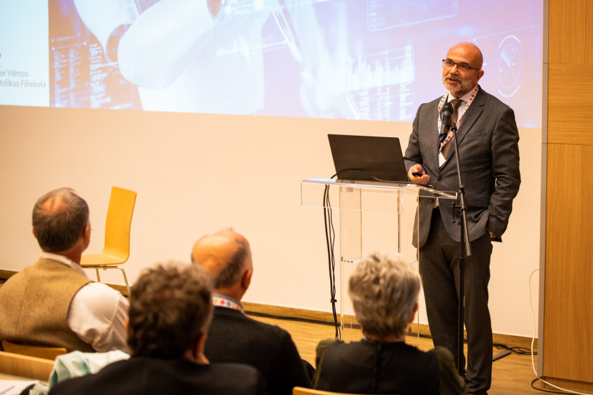 Gloviczki Zoltán, az Apor Vilmos Katolikus Főiskola rektora, az Organikus Pedagógiai Egyesület alelnöke a mesterséges intelligenciával kapcsolatos félelmekről tartott előadást, M.I. a baj? címmel.