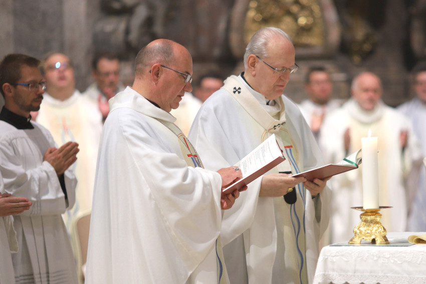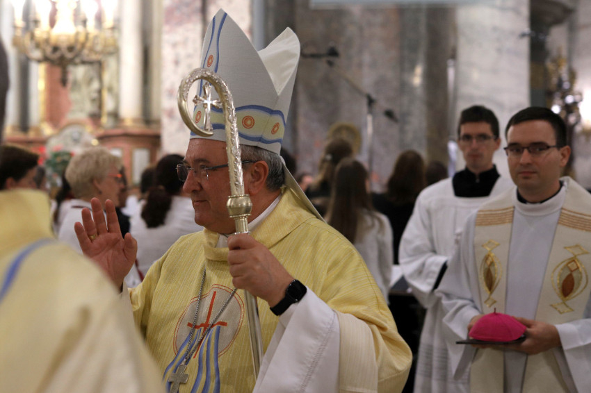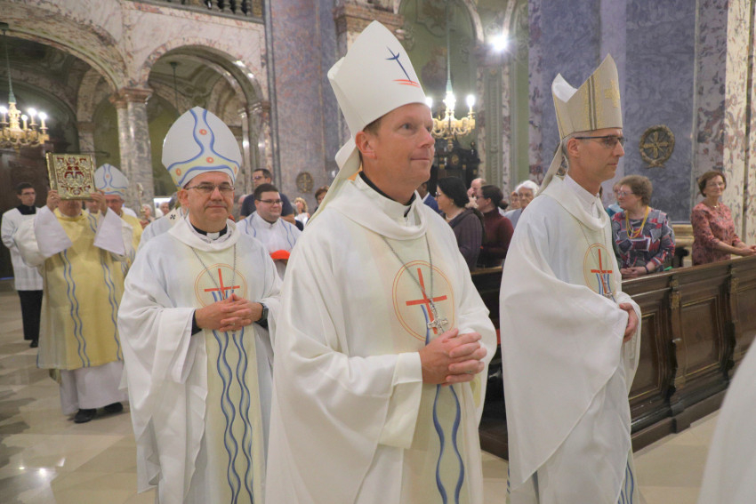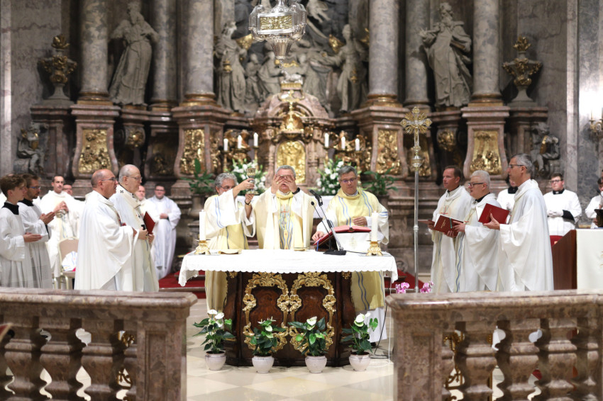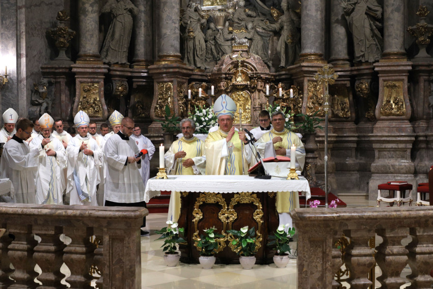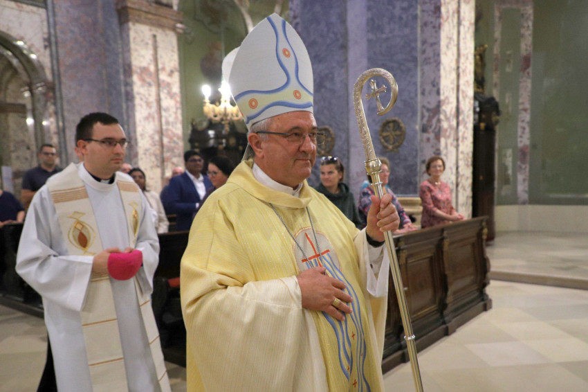 Veres András püspök a szentmise kezdetén köszöntötte a híveket, és felidézte: hasztalan az ember iparkodása, ha nincs rajta Isten áldása – most ezt az áldást kérjük.