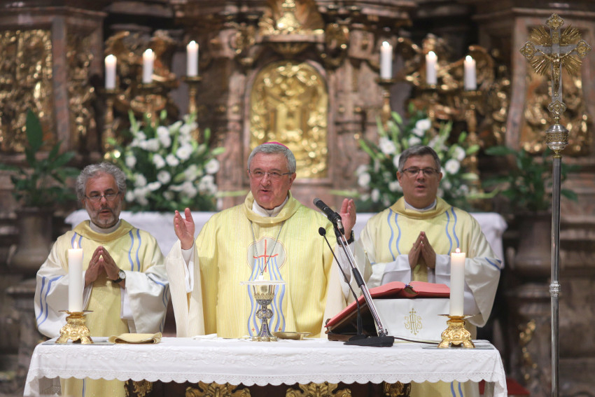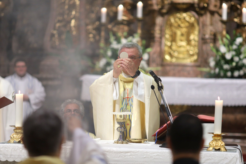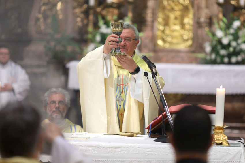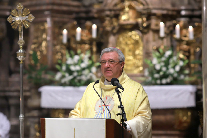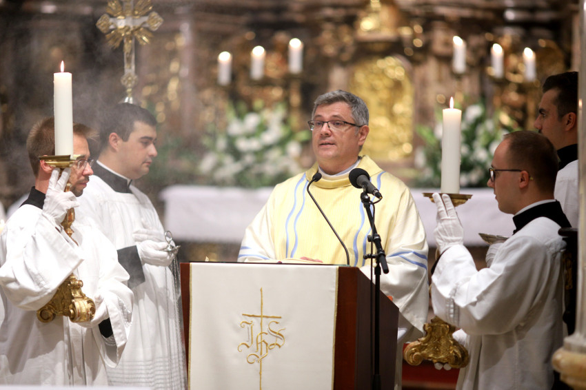 Az elhangzott evangéliumban Jézus felteszi a kérdést apostolainak: „Kinek tartanak engem az emberek?” A szónok rámutatott, Jézus ezt a kérdést nem önmaga miatt tette fel, hanem a tanítványokat késztette gondolkodásra: abból, amit eddig láttak, milyen következtetésre jutottak? Felismerték-e benne az Isten felkentjét, az Isten fiát?