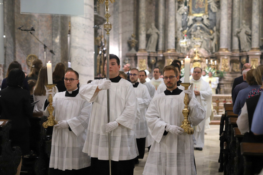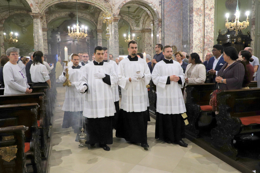 Az ünnepélyes nyitó szentmisén koncelebrált Erdő Péter bíboros, prímás; Marton Zsolt váci megyéspüspök; Spányi Antal székesfehérvári megyéspüspök; Martos Levente Balázs esztergom-budapesti segédpüspök, a Központi Papnevelő Intézet rektora; Fábry Kornél esztergom-budapesti segédpüspök; Tóth Tamás, az MKPK titkára; Németh Gábor, az MKPK Titkárságának irodaigazgatója; Zsódi Viktor piarista tartományfőnök; Andrásfalvy János szalézi tartományfőnök. Jelen volt Maruzsa Zoltán köznevelésért felelős államtitkár; Birher Nándor, a Pázmány Péter Katolikus Egyetem Bölcsészet- és Társadalomtudományi Karának dékánja és Dragonits Márta, az Ars Sacra Alapítvány kuratóriumi elnöke. A zenei szolgálatot a Don Bosco Ének- és Zenekar biztosította.
