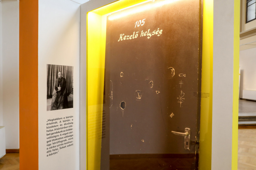Mindszentyt 1919-ben, 1944-ben és 1948-ban is börtönbe zárták. A kiállításon látható ajtó a Conti utcai börtönből való, ahol Mindszenty Józsefet 1949-től 1954-ig tartották fogva. Azt írta róla: „az én fegyházam”. Ez a borzalmak és a szentté válás helye lett. Később úgy emlékezett vissza, hogy a börtöncella úgy vette körül, mint az Isten kegyelme. Mindszenty ennek a börtönnek több helyiségben is raboskodott. A 105-ösre jól emlékezett, mert itt egy ideig volt egy rabtársa is. Érdekes, hogy pont ez a cella nincs már meg, az itt látható ajtó egy kezelőhelyiségé, a belekarcolt alakzatok viszont magukért beszélnek.