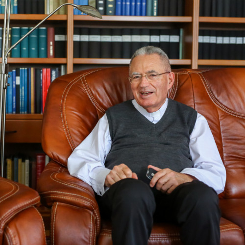 – Miután Budapesten teológiai doktorátust szereztem, 1973-75 között Strasbourgban volt módom teológiát tanulni, ott is szereztem meg vallástudományból a doktorátusomat. Több akkori évfolyamtársammal tartom a kapcsolatot mind a mai napig. Így kerültem például Keralába. Úgy gondolnánk, a világ végére, de ha tudnánk, milyen szinten áll a teológiájuk...! Épp amikor ott jártam, akkor folyt az építése egy négyemeletes, 500 000 kötet befogadásra alkalmas könyvtárnak. Mindenféle folyóirathoz hozzáférhettem, teológusaik Rómában és Párizsban végeztek. De mondok mást: káplán korom óta nagyon érdekelnek a keleti vallások. Életem során elkerültem Jordániába, Szíriába, Egyiptomba, Irakba, ahol megismerhettem a keleti kereszténység képviselőit is. Damaszkuszban például az egyetem rektorát, a főmuftit, aki egyben a miniszterelnök-helyettesi pozíciót töltötte be még Asszad elnök idejében. Tanúja lehettem, hogy az alavita lakosság milyen békében élt együtt a keresztény hívőkkel.
