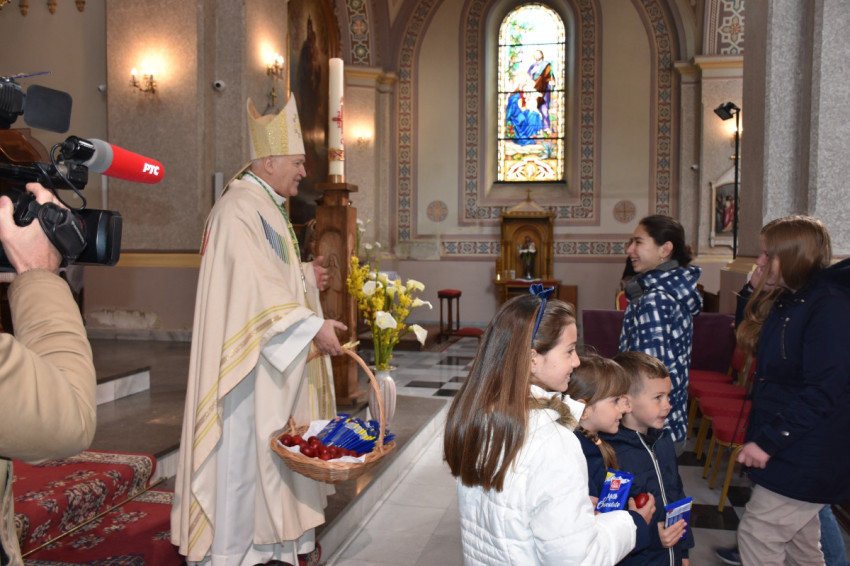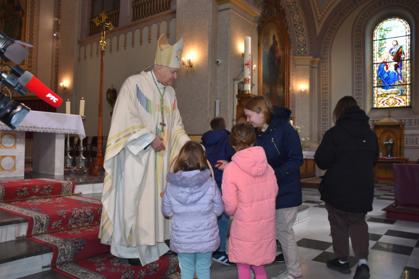 A szentmise végén a főpásztor szerény ajándékkal kedveskedett a jelen lévő gyerekeknek, fiataloknak.