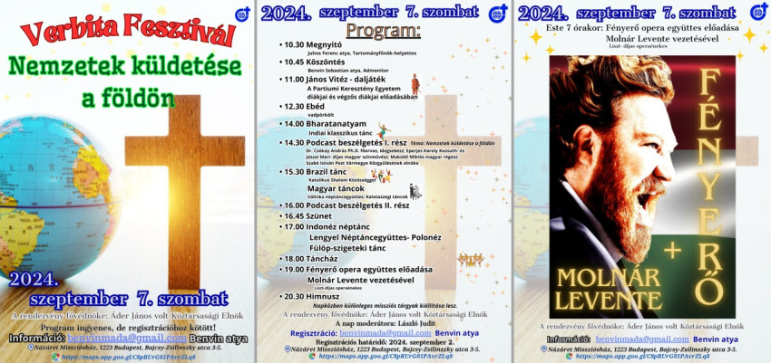 Regisztrálni lehet és további információ kérhető a benvinmada@gmail.com e-mail-címen Benvin Sebastian SVD atyától.