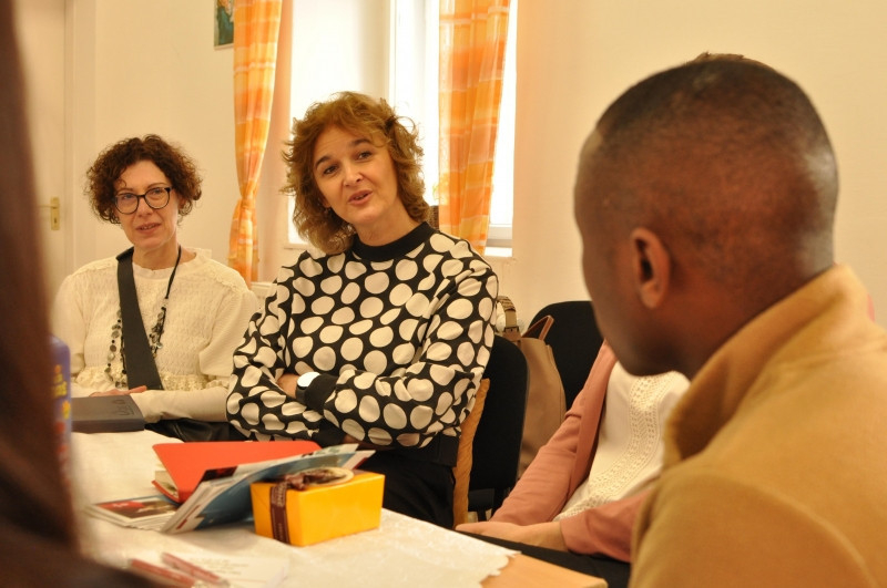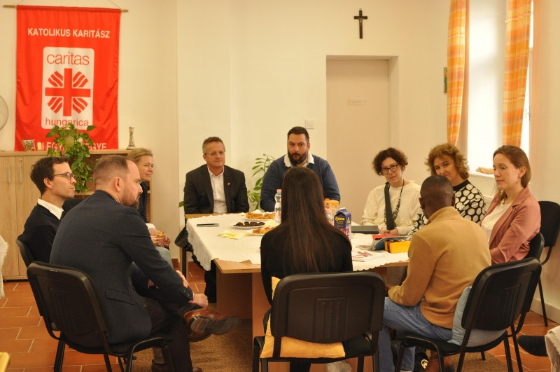 Látogatásuk célja az volt, hogy megismerkedjenek a helyi karitász munkájával, elsősorban pedig azzal, hogyan segíti az egyházmegye az ukrán menekülteket. A személyes hangvételű találkozóra két menekültet is meghívtak, akik megosztották a jelenlévőkkel életútjukat, és azt, hogy miben segített nekik a Karitász. Egyikük egy ukrán háromgyermekes édesanya volt, aki egy évig élt Nagymaroson a Karitász házában, másikuk pedig egy nigériai fiatalember.