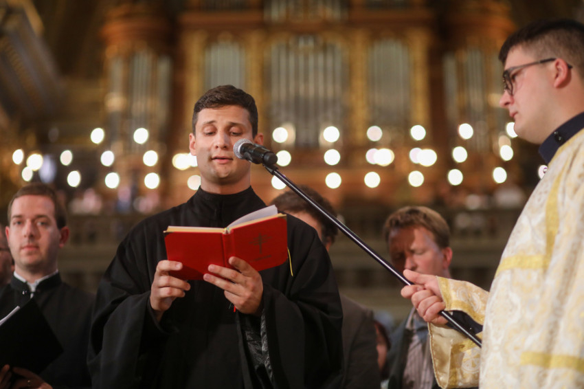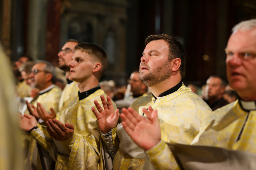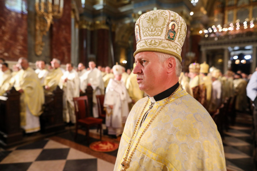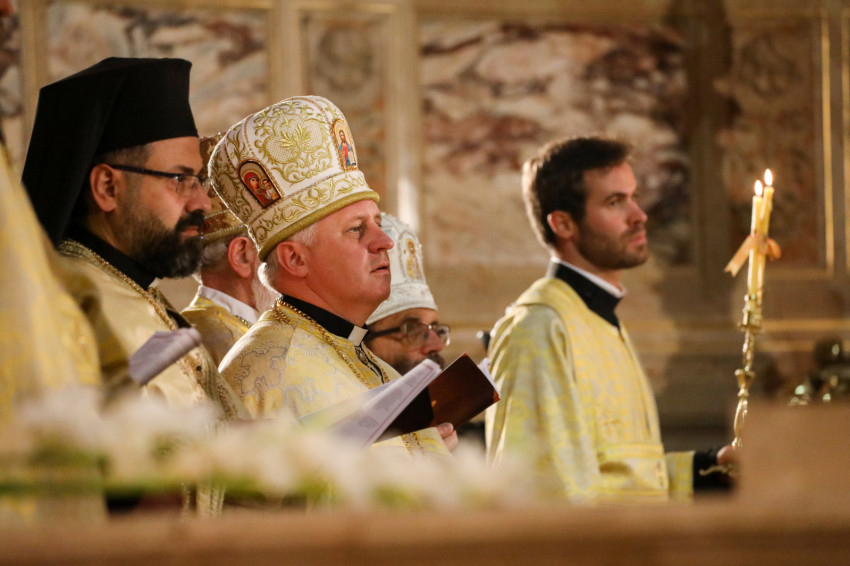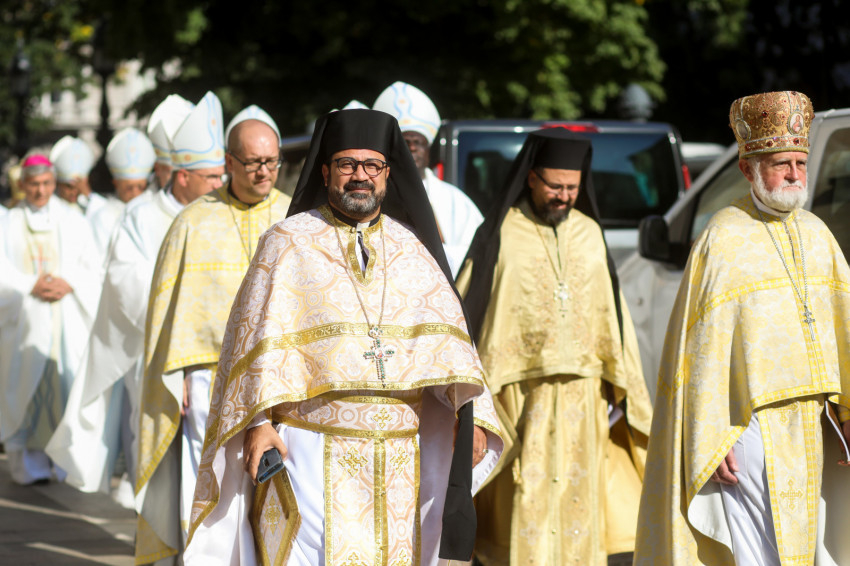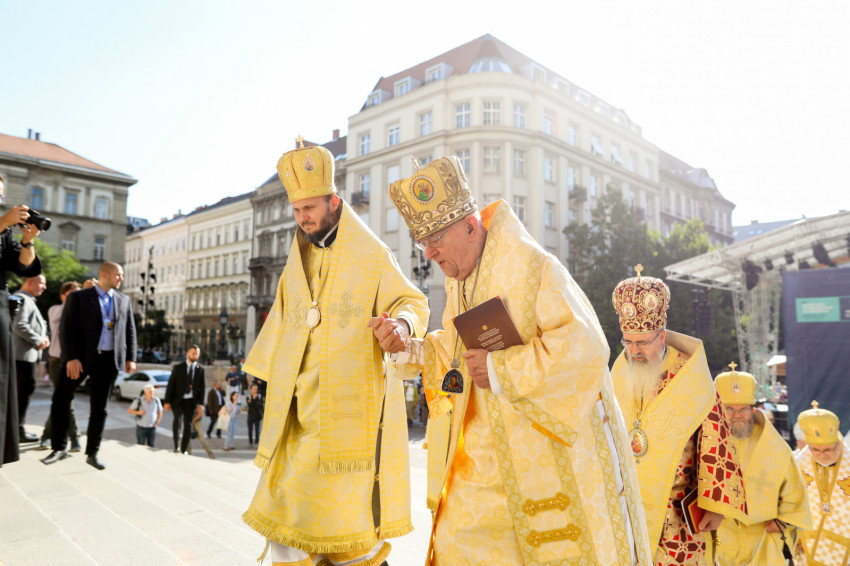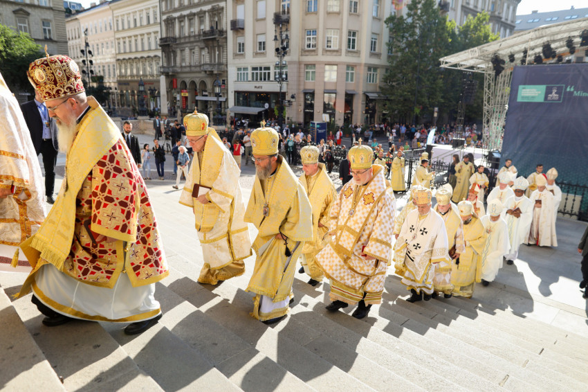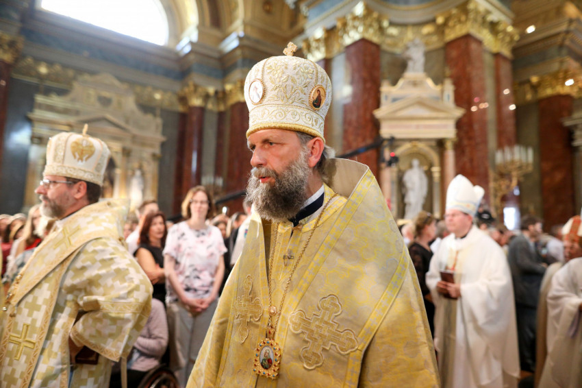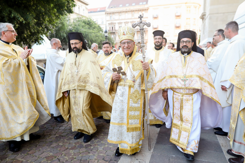 Ezért boldog az édesanyja, mert hitt benne, mert élt vele, mert ővele élt. Máriának volt a legközvetlenebb kapcsolata Jézussal, ezért boldog ő, de még boldogabbak azok, akik az Ige hallgatásával és megtartásával még nála is közelebb kerülnek Istenhez. Lehetséges ez? Nagy, megfejthetetlen titok, és mégis állandóan megfejtendő, kifejtendő titok. Talán most közelebb kerülhetünk az Eucharisztiához, ezen a főpapi liturgián átélhetjük a nagy főpap bevonulását, aki el akarja foglalni a legelső helyet az életünkben, a szívünkben. Méltán hangzik el tehát a felszólítás: „Ez az Úr napja, népek, örvendezzünk!” – zárta szentbeszédét Kocsis Fülöp, az európai keleti katolikus püspökök találkozójának házigazdája.