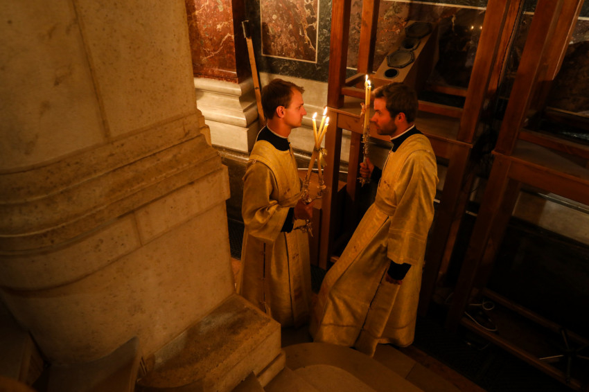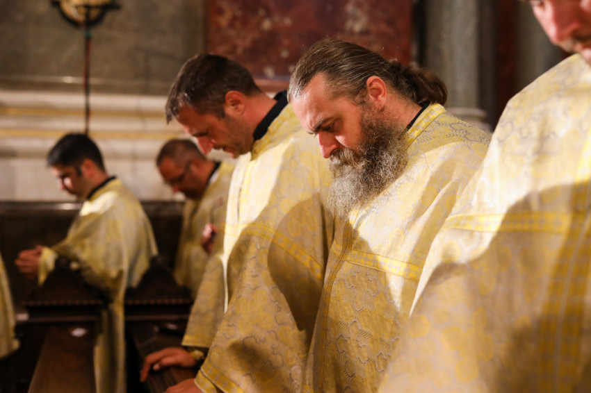 (Ez a liturgián ószlávul hangzott el a későbbiekben.) Az isteni Szent Liturgia fel akar emelni a tökéletes Istenre figyelésbe, amikor már a rendkívüli személyiségek, a számos testvérünk jelenléte, a mindenfelől érkező hívek igen nagy számának szokatlansága, senki és semmi nem számít, az a lényeg, hogy a nagy főpap be akar vonulni az életünkbe.