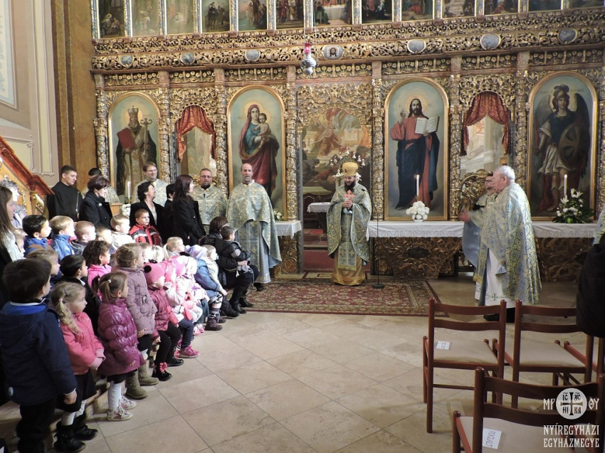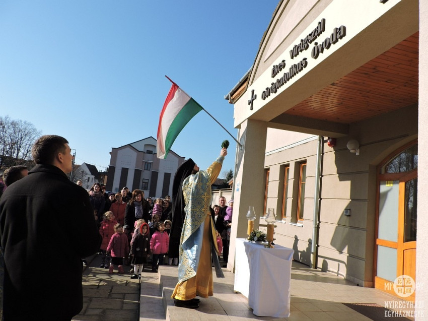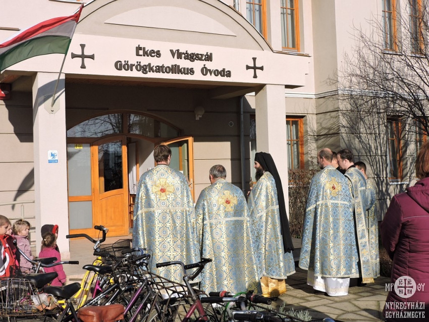 A liturgia végén az óvodapedagógusok három éneket adtak elő, majd a gyerekek megáldása következett, végül megáldották a feliratot, amely az óvoda épületének homlokzatán található. Az ünnepségen részt vett Grunda János pasztorális helynök, Orosz István kegyhelyigazgató és Papp Bertalan, Máriapócs polgármestere is.
