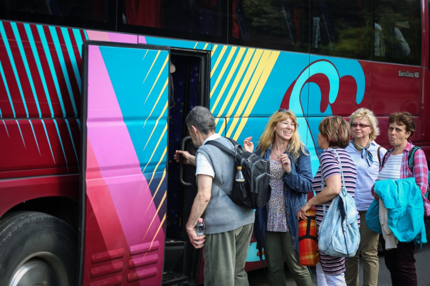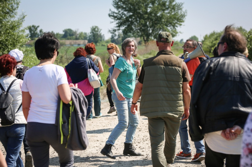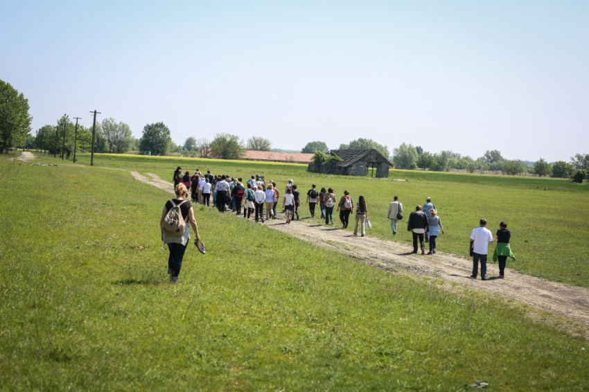 Autó érkezik, és vizet kapunk. Némi pihenő után egy hídon haladunk át, a patakban hattyúk lebegnek méltóságteljesen. Ekkor már másfél órája gyaloglunk. Valamivel odébb hatalmas jegenyék közé érkezünk, hosszú idő után végre árnyékba. Feltűnik a „mentésünkre” Bátáról küldött busz: nagy késésben vagyunk, sietnünk kell a misére.