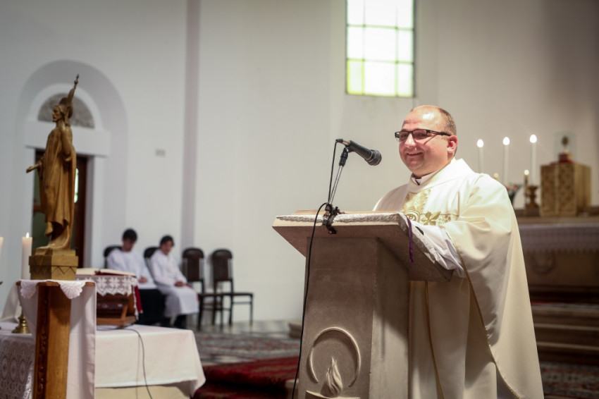 „Az Isten látja a küzdelmeinket, és át akar bennünket ölelni; úgy, ahogy vagyunk – mondja prédikációjában Kürtösi Krisztián, a bátai kegyhely plébánosa. – Mindenki lehet válságban, kerülhet a szakadék szélére. Mindannyian kerülhetünk olyan élethelyzetbe, amelynek hatására tele leszünk kétségekkel, kérdésekkel, sebekkel, fájdalommal és panasszal. Jézus látja, tudja ezt, és meg akar gyógyítani. Az Isten szeretetből teremtett, váltott meg, és szeretetében az üdvösséget szánja nekünk. Bízzuk rá magunkat!”