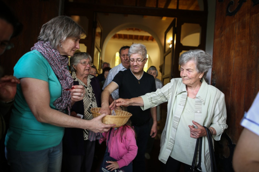 A hangulat baráti, közösségi. A legtöbben láthatóan ismerik egymást, de bennünket is kedvesen, érdeklődéssel fogadnak. Kissé tartunk tőle, hogy mivel egy ennyire bensőséges alkalomról akarunk tudósítani, nem fognak nekünk igazán örülni – de egyetlen elutasító gesztust sem tapasztalunk. Igaz, mi is igyekszünk alkalmazkodni, szinte „belesimulni” az eseménybe, sőt ennél többre törekszünk: résztvevőkké, zarándokokká válni.