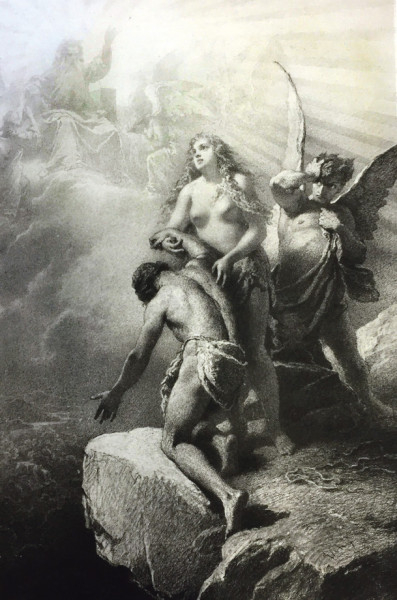 A háttérből Lucifer figyeli az eseményeket, gúnyos mosolya arról árulkodik, szinte már biztos benne, hogy elbukik az ember. Azonban az Úr mondja ki a végső szót: „Mondottam, ember: küzdj és bízva bízzál!” Zichy Mihály grafikai lapján, litográfiáján drámai erővel ábrázolta Madách művének utolsó, a 15. színben zajló jelenetét. A Magyar Helikon Kiadó 1958-as kiadásának címlapján ez a rajz tűnik a szemünkbe. Ha belelapozunk a nagy formátumú, keménytáblás, fekete vászonkötéses könyvbe, minden egyes színnél egész oldalas illusztrációkat láthatunk.