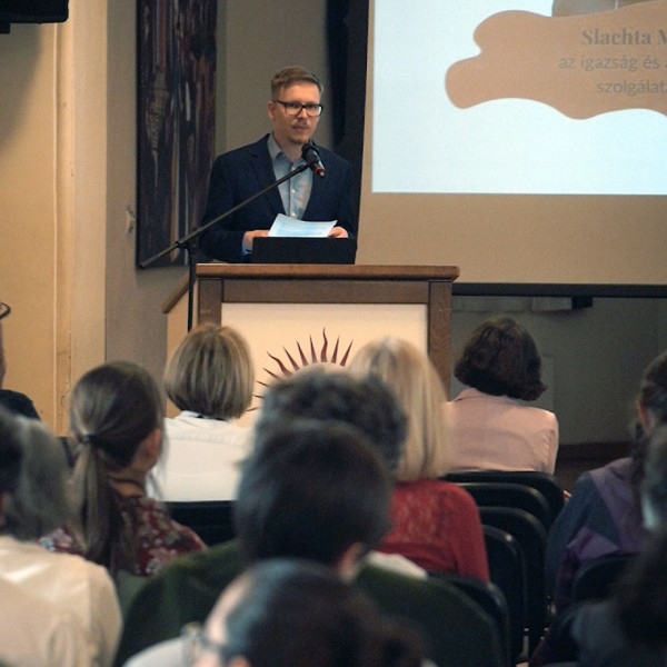 Németh Emma szociális testvér, közgazdász előadásában az igazság és szeretet, az igazság és irgalom prófétájaként mutatta be a Szociális Testvérek Társaságát alapító Slachta Margitot. Margit testvér vallotta, az igazságosság csak az örökérvényű igazságon alapulhat. „Az igazság alkutlan és kérlelhetetlen, az irgalom határtalan. Ha érvényesül, megáldja a földet”. Alakjában párhuzamosan él a másik emberért és a nemzetért való felelősség.
