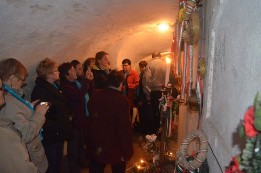 A székesegyház és az annak északi tornyában berendezett emlékszoba megtekintése után a zarándoklat a székesegyház kriptájában ért véget, Márton Áron püspök nyughelyénél.