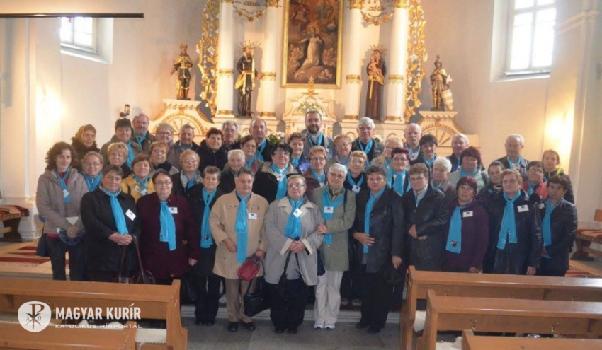 A templomban Csiby László plébános megmutatta a zarándokoknak a szülőfalunak adott püspöki ajándékokat: egy kelyhet, egy paténát és egy cibóriumot.