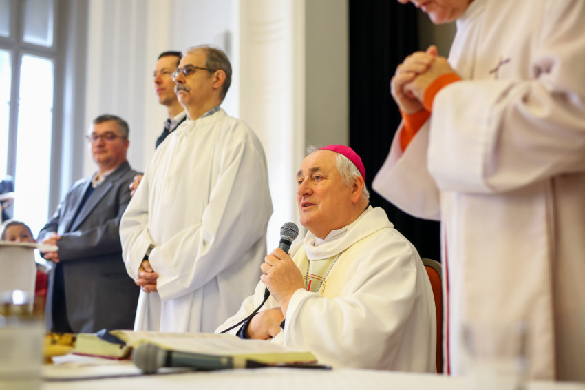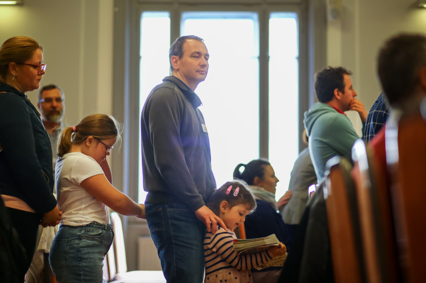 Bíró László kitartásra és hűségre buzdított beszédében. Tartsunk ki a kenyértörésben, akkor is menjünk el a templomba, ha esik az eső vagy fúj a szél. Mert ha a gyerekek azt látják, hogy nem baj, ha kimarad egy-egy szertartás, akkor kamaszként könnyen eltávolodnak majd az Egyháztól.