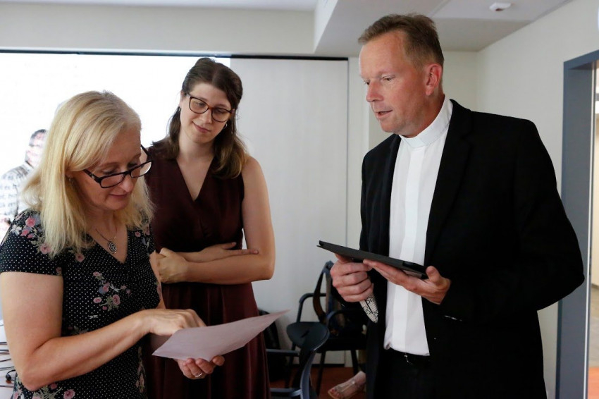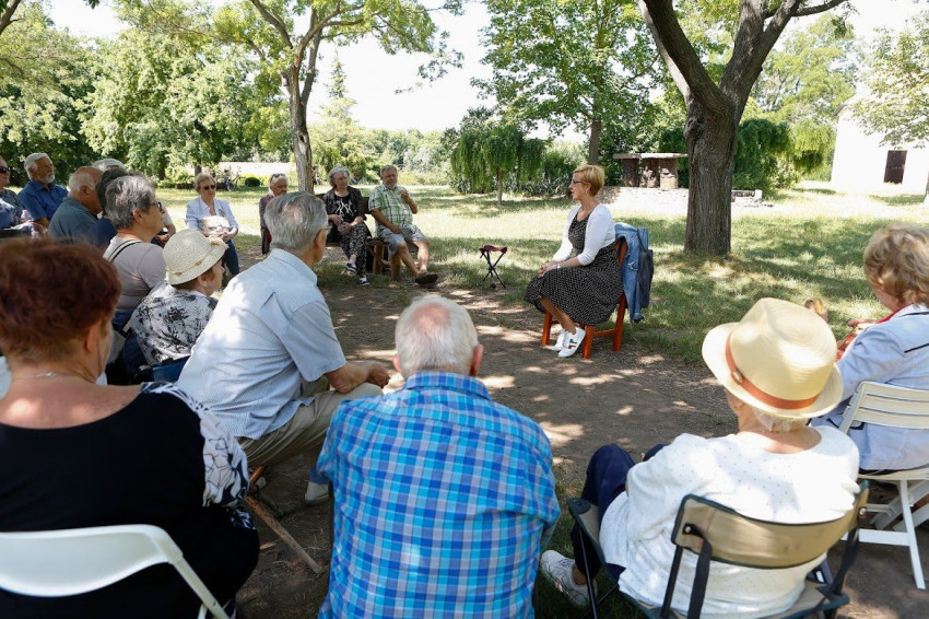 A kecskeméti arborétumban álló Mária-kápolna előtti réten a Keresztény Értelmiségiek Szövetségének tagjai kaptak tájékoztatást az eucharisztikus kongresszus programjairól.