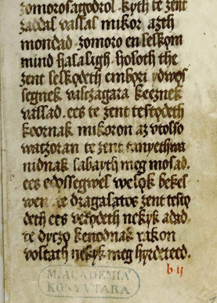 Alább a kódex 51. és 61−62. oldaláról a felfeszített Krisztushoz szóló himnusz szövegromlásnak legkevésbé kitett két rövid részletét illesztem egymás mellé: