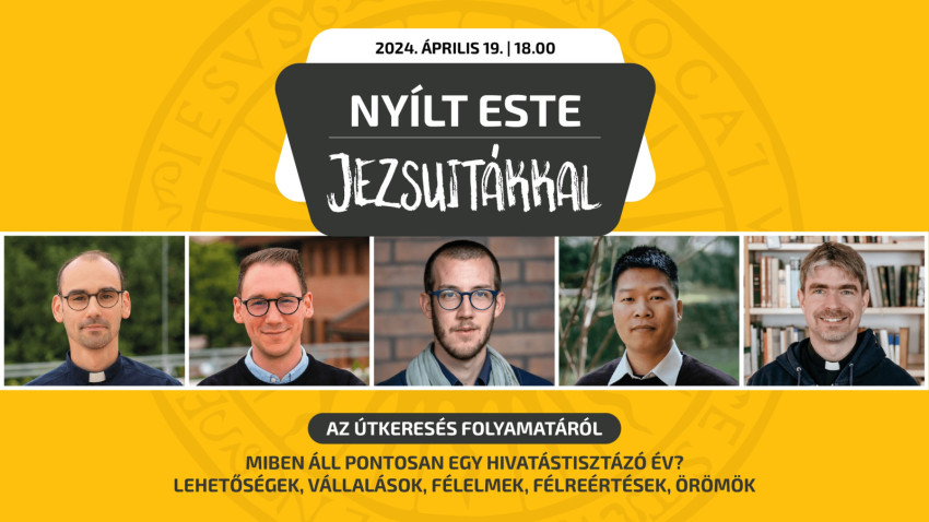 A XI. kerületi Muskotály utca 15. szám alatti rendházban Bellovics Gábor SJ, Jancsó Árpád SJ, Nagy Bálint SJ, Ngoc Phamdinh SJ és Török Gellért SJ várja az érdeklődőket április 19-én, pénteken 18 órára.