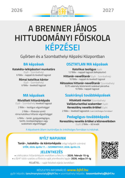 A képzésekről és a jelentkezéssel kapcsolatos tudnivalókról részletes tájékoztatás elérhető a Brenner János Hittudományi Főiskola honlapján.