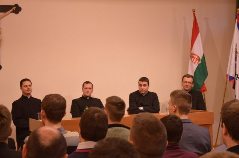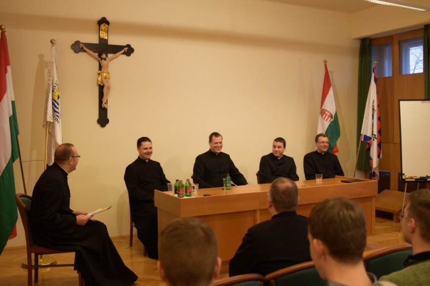 Ezt követően kerekasztal-beszélgetés kezdődött a szeminárium dísztermében Juhos Imre spirituális vezetésével és négy meghívott atya közreműködésével. A plébánosok (Déri Péter, Mikolás Attila, Németh István, Finta József) hivatásukról, a szemináriumról és természetesen papi szolgálatukról beszéltek, majd tanácsokat adtak azoknak, akik lelkipásztori elhivatást éreznek magukban.