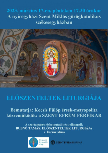 A kórusciklus március 17-én, 17.30-tól csendül fel először a Szent Efrém Férfikar előadásában a nyíregyházi Szent Miklós-székesegyházban. A változó részekben a kántorképző növendékei és a Szent Atanáz Kórus tagjai is közreműködnek.