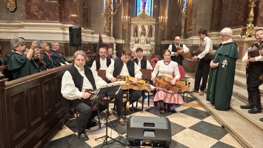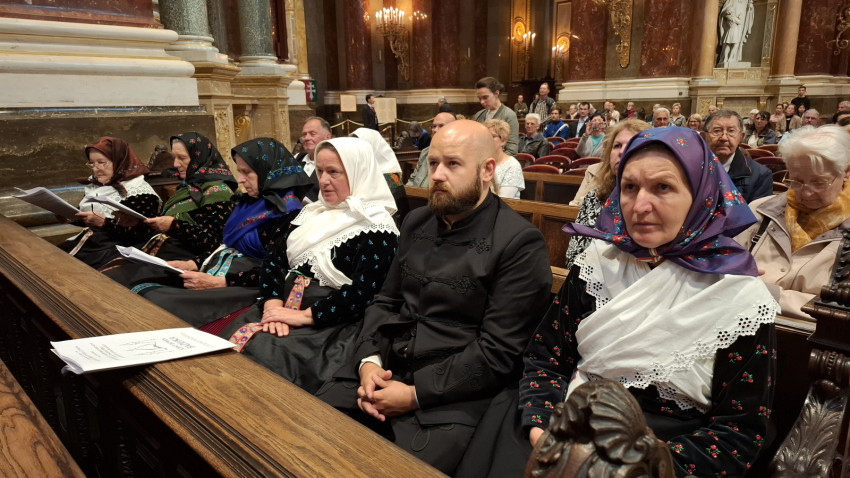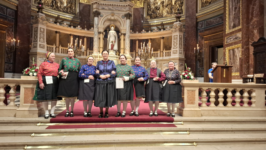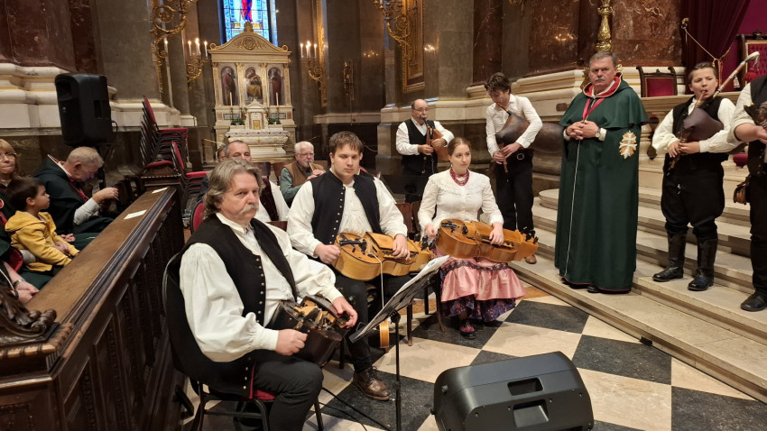 A zoborvidéki Szent István-ének előénekesei a Gímesi Hagyományőrző Csoport tagjai voltak, akik 2023-ban már egyszer részt vettek a Szent Jobb-misén.