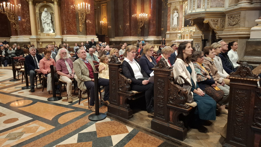 A moldvai Pusztinából származó fiatal Veres Mihaela a moldvai Mária tiszteletére kezdetű éneket énekelte lélekig hatoló, gyönyörű hangján. Végül a Keszthelyi Család Iskola nyolcadikosai által elkezdett Mennyek királyné asszonya kezdetű közismert népénekbe már a hívek is bekapcsolódtak.