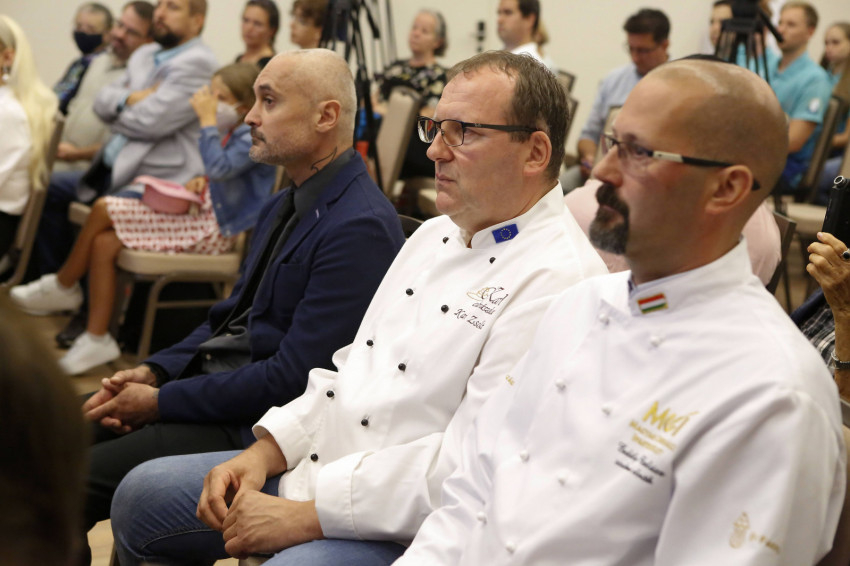 A sajtótájékoztatón bemutatták a NEK süteményét, az „Egy falat mennyország” Karl Zsolt finomsága, amelyet 1300 elsőáldozó fog megkapni a kongresszus nyitó szentmiséje után.